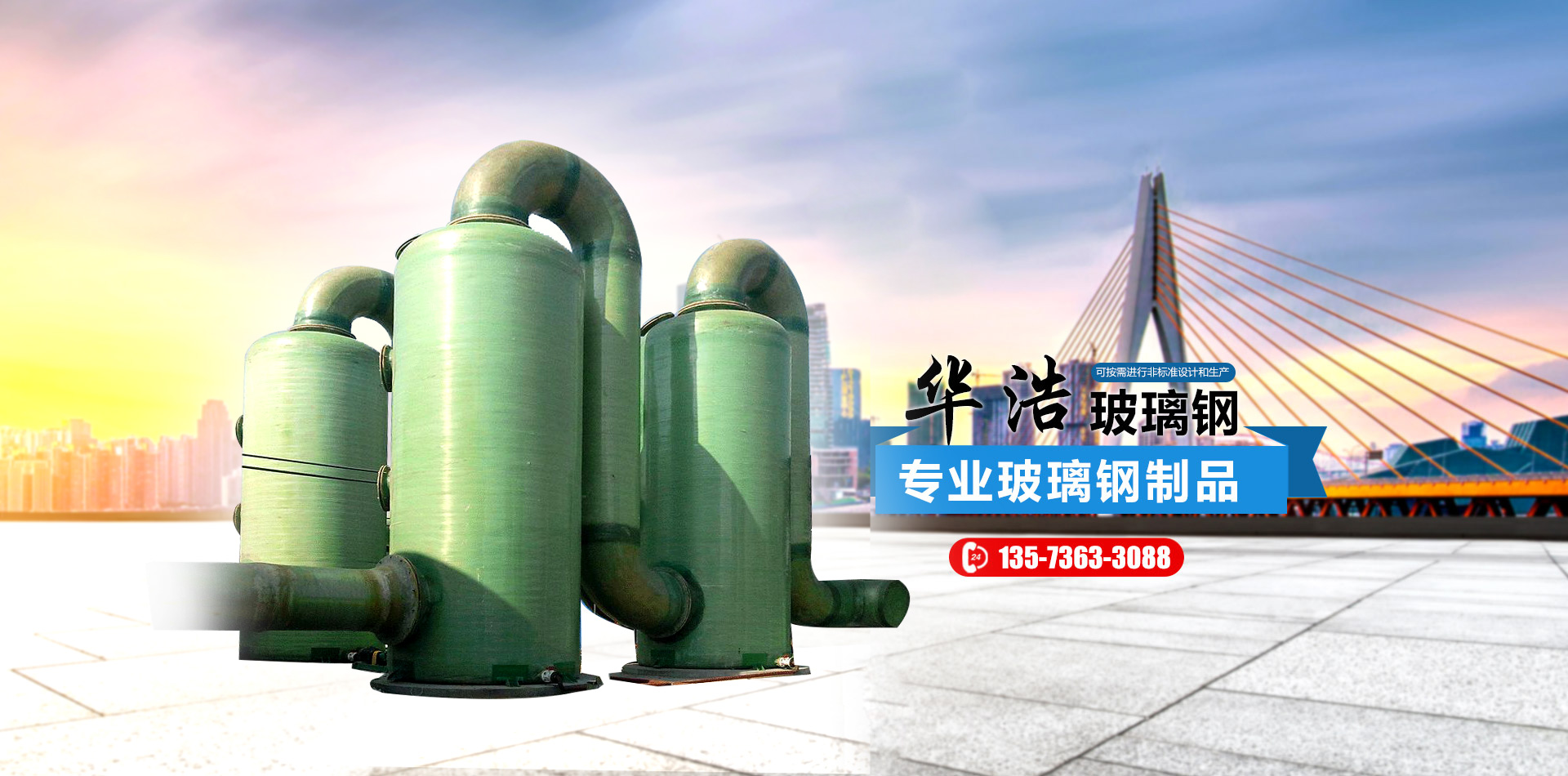 山東華浩玻璃鋼有限公司,位于世界風箏都濰坊市南三十公里處,是生產各種玻璃鋼制品的專業(yè)公司。   華浩玻璃鋼生產各種立式、臥式玻璃鋼罐、玻璃鋼儲罐、玻璃鋼運輸罐、標準運輸罐、玻璃鋼鹽酸罐、化學反應罐、真空壓力罐、設備罐、復合罐、玻璃鋼儲槽、大型玻璃鋼容器;玻璃鋼化糞池;各種型號的橫流式、逆流式(圓形、方形)玻璃鋼冷卻塔;機械纏繞玻璃鋼管道、管件、壓力管道,有機、無機通風管道、空調管道;漂液洗鼓、耐腐耐高溫反應釜、印染布車、組合式玻璃鋼水箱、玻璃鋼風機、玻璃鋼不定型工藝品等二百多個品種。